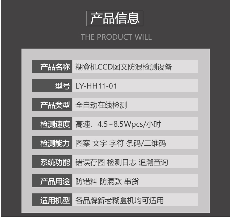 糊盒機(jī)在線CCD檢測(cè)系統(tǒng)加裝在走紙航道上,連線識(shí)別混貨混款,可幫助紙品包裝廠解決粘盒出貨混料問題,提高出貨品質(zhì)。